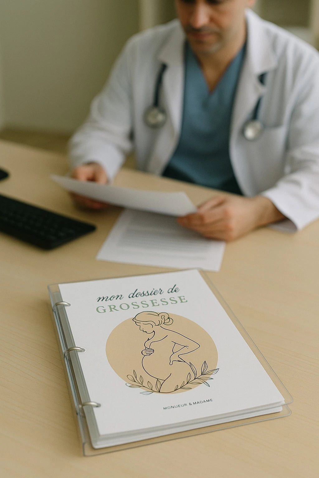 Il permet d’organiser les documents médicaux, de suivre les étapes mois par mois et de conserver un souvenir structuré de cette période unique